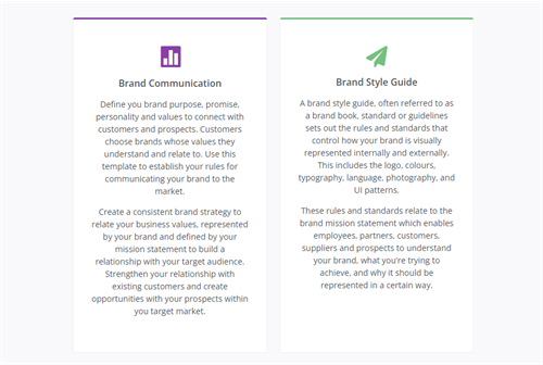 When defining your brand strategy, voice and mission statement consider how this relates to your target audience. The YouDoCMS brand communication template includes four sections as follows.